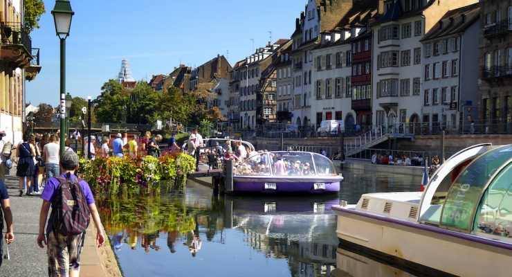Utflyktsbåtarna lägger till vid Palais Rohan, ett slott från 1700-talet med flera museer. Härifrån åker man på en timslång tur runt centrala Strasbourg.