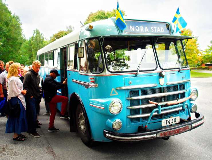 Tre små gummor skulle gå en gång, till marknaden uti Nora … Den gamla visan väckte vårt intresse och nu är vi på väg. I en restaurerad buss från 1950-talet.