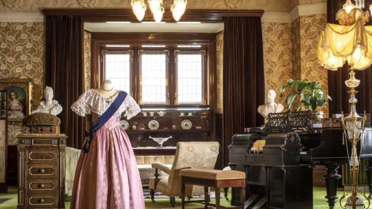 Dräkterna som visas i utställningen är hämtade från den brittiska TV-serien Victoria, från 2016-2019. Huvudparten av serien utspelar sig under 1800-talets mitt då idealet var den typiska prinsessklänningen med stora puffärmar och vida kjolar och där moderniteten krinolin precis lanserats. Bland dräkterna som visas återfinns den storslagna kröningsdräkten, välskräddade riddräkter och extravaganta sidenklännningar. Herrar bar skräddarsydda rockar, tighta byxor och hög hatt och även Prins Alberts ståtliga kläder finns representerade. Kostymörerna James Keast och Rosalind Ebbutt hämtade inspiration från bevarade samlingar av Victoria garderob och från den stora mängd porträtt och tidiga fotografier som finns av den brittiska drottningen och hennes prinsgemål.
