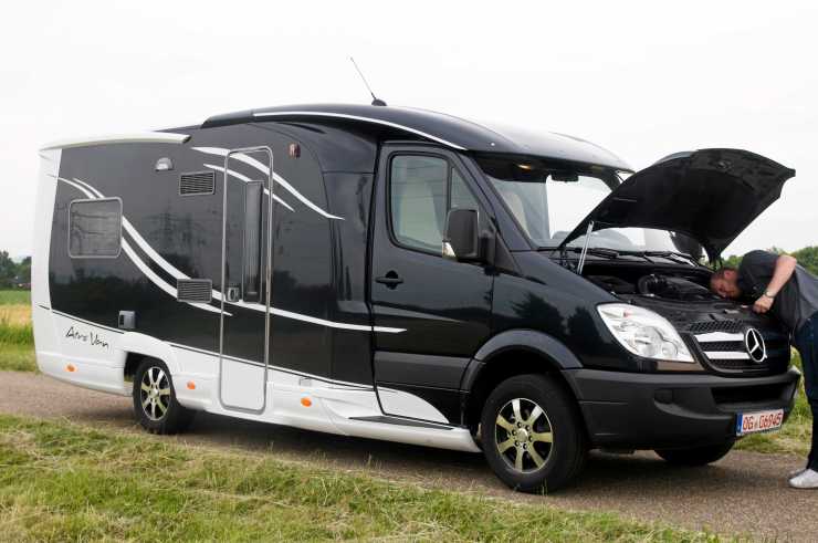 Den trevliga CDI-motorn från Mercedes finns i tre versioner, där den största kommer med automatlåda. Varianterna är 2,2 liter med 129 hk, 2,2 liter med 163 hk och 3,0 liter med 190 hk. Jag kör den manuella versionen med 129 hk. Kopplingen och den sexväxlade lådan arbetar fint ihop och Aero Van är en fröjd att köra oavsett trafikmiljö. Motorn räcker till bra och det finns resurser för omkörning trots att jag kör svagaste varianten. Helst hade jag testat stora motorn med automatlåda. För är det någonting jag uppskattar är det moderna automatlådor. I dag är de både bekväma och ekonomiska. Dessutom har den svenska generalagenten valt att lägga automatlåda som standard på Aero Van. Bakåtsikten har brister men annars känns bilen mycket trafiksäker, även vid hård kurvtagning. Det här är en husbil för dig som prioriterar åk- och köregenskaperna högt.