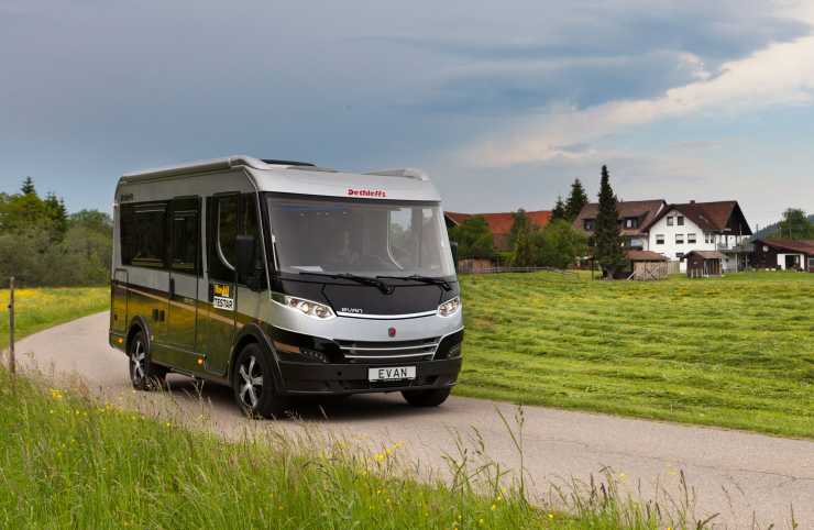 En stor nyhet kan vara liten till det yttre. Ett bra exempel på det är Dethleffs EVAN. Den visades för första gången under CMT-mässan i Stuttgart i början av året. Den fick mycket uppmärksamhet i pressen och lockade många besökare. Blott 565 centimeter lång och 215 centimeter bred erbjuder den ändå en mängd egenskaper som förknippas med betydligt större bilar.