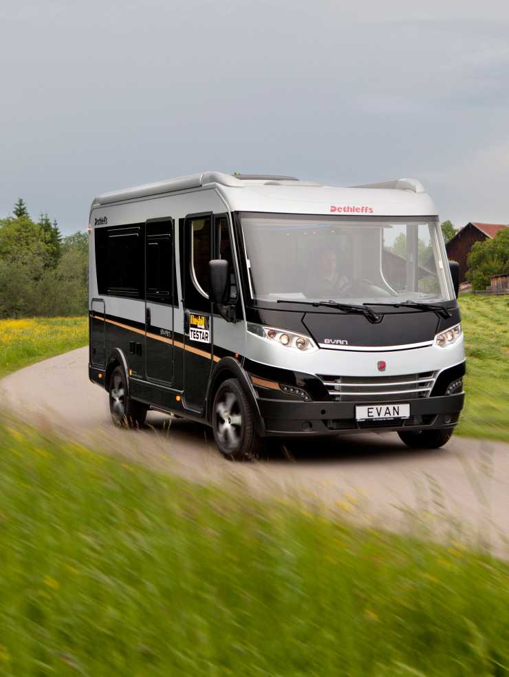 En kritisk granskare kan tycka att EVAN är en renodlad pr-produkt. Men då tycker jag man missar poängen med bilen. Visst är den byggd på samma sätt som Dethleffs övriga bilar. I grund och botten är det en helintegrerad bil baserad på ett Fiatchassi, inget nytt under solen där. Men den flexibla planlösningen och det faktum att sex personer faktiskt kan åka bekvämt i en så pass liten bil är ganska häpnadsväckande.