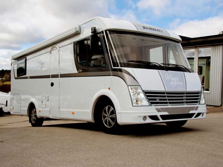Scandinavian Magic Edition White är en ny kampanjmodell från Dethleffs gjord för den nordiska marknaden. Den finns som både hel- och halvintegrerad och med två varianter av bäddar i sovdelen. Antingen dubbelsäng eller långbäddar. Dessutom kan man välja mellan värmesystem – antingen Truma eller Alde. I det senare fallet ingår ett vinterkomfortpaket. Elektrisk golvvärme, markis och cykelhållare får man på köpet. Vår provbil var dessutom utrustad med 160 hk motor och automatlåda. Den senare kostar 28 000 kronor extra.