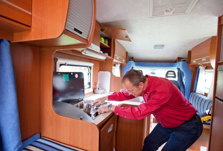 Dieselvärmaren från Webasto sitter under förarhytten och värmer husbilen på luftburet vis genom ett antal utspridda utblås i bodelen. Vi kliver in genom entrén och konstaterar att direkt till vänster finns en ledstång i blänkande krom. King 530 G ger ett exklusivt intryck invändigt med sina ljusa material och de stämningshöjande ljuskällorna. En vanlig anmärkning på främst utlandsbyggda fritidsfordon är bristen på klädkrokar. Här finns en vägg som passar för ändamålet men den har istället använts till en utsmyckning klädd i läder som till hälften inramar en spegel. Form verkar ha gått före funktion i den detaljen. Till höger om entrén finns en sittpuff och vårt exemplar har extrautrustats med ett extra bälte där en åkande sitter baklänges. Inte jättebekvämt kanske men ett bra sätt att få med sig fyra passagerare plus föraren. Med tanke på att fem personer kan sova i denna husbil är det positivt att fem även har möjlighet att åka bältade. King 530 G har en taksäng över sittgruppen och under den är det 190 centimeter från golvet i uppfällt läge. Taksängen sänks med en elmotor och det finns många bra förvaringsutrymmen för småsaker vid huvudändan. Dessa utrymmen torde för övrigt vara förträffliga att gömma värdeföremål i eftersom ingen kommer åt dem så länge taksängen är uppfälld. Sittgruppen består av skönt stoppade dynor där man gärna blir varande. De två bältade platserna i den större soffan har inget nackstöd vilket är en nackdel ur säkerhetssynpunkt. Annars sitter fem personer bekvämt runt det enbenta bordet som mäter 105x65 centimeter. Bordet kan för övrigt skjutas åt olika håll och dessutom tryckas nedåt vilket förvandlar det till sängbotten. I denna husbil finns gott om bäddplatser. Fem säger Elnagh själva men man skulle kunna säga 5,5 då det ryms ett barn mellan de båda långbäddarna. Tv-stativet sitter i köket och tv:n kan vändas antingen bakåt eller framåt. Utfälld och redo för visning hamnar den i mittgången och kanske kommer en och annan King-ägare slå huvudet i dumburken när de ska passera. Köksavdelningen är tilltalande designmässigt. Den vita bänken med sin utanpåliggande gashäll ser läcker ut. Detaljer som vita skåpluckor och en skjutdörr mellan kök och bakre regioner med infällda vita plastskivor accentuerar den exklusiva känslan. Gashällen må se läcker ut men det är trångt mellan ”plattorna” och dessutom är det lätt hänt att kastrullen välter ned från sin upphöjda häll. På diskhon sitter ett lock som kan användas som skärbräda. Här finns även två lådor och ett smart skåp som utnyttjar kökshörnet tack vare en utfällbar apotekardel. Köksfläkt är standard liksom öppningsbart köksfönster och bestickinsats i översta utdragslådan. King 530 G har en omfattande innerbelysning som kan ändra färg och styras med fjärrkontroll. En gimmick med färgblinkande kan tyckas men annars är ljussättningen i köksregionen imponerande. Indirekt belysning från bänkarnas undersida och i en konsol med kryddhyllor ner mot golvet ger läckert upplysta kryddburkar. Ett kliv längre bak i husbilen finns duschkabinen på husbilens vänstra sida och toalett/handfat på högra sidan. Duschkabinen har en löstagbar träplatta i golvet som ger plant golv när den inte används. Toautrymmet på andra sidan mittgången har hög trivsel. Speglar, hyllor, belysning, kontaktuttag och krokar lämnar inget i övrigt att önska. Toalettstolen är Dometics porslinsvariant med vridbar sits. En liten nackdel med toan på husbilens högra sida är att tömningen sker på ”uteplats-sidan” vilket kanske inte är optimalt. Ytterligare ett kliv bakåt ges tillgång till den imponerande sovavdelningen med två separata långbäddar som vardera är 80 centimeter breda. Mittpartiet har en utdragbar del som gör sängen stor och ett barn kan ligga i mitten. Under höger säng finns en garderob som även nås via en lucka i garaget. Klädstänger för galgar samt hylla för småsaker finns i detta skåp. Under vänster säng finns ett skåp till i lite mindre format eftersom Trumas varmvattenberedare upptar resten av utrymmet. Mitt mellan de båda långbäddarna finns tre trappsteg som alla utnyttjats maximalt med öppningsbara luckor. Med andra ord finns bra med förvaringsmöjligheter i sovrummet, här ska även de tre överskåpen vid sängens huvudända räknas med. Ovanför fönstren finns små öppna hyllor där småsaker och böcker kan läggas. Vid fotändan på ena sängen finns antennuttag samt kontakter för både 12-volt och 230-volt. Sammanfattningsvis kan sägas att Elnagh King 530 G är en mycket kompetent, för att inte säga komplett husbil till vettigt pris. Någon renodlad vinterbil med ventilation runt överskåpen och vattenburen värme är det däremot inte. Men om du nöjer dig med en husbil för tre årstider ska du definitivt ta en extra titt på Elnagh King 530 G. Här ges bra boendekomfort för minst två personer som gärna tar med sig tre gäster på resan. Eller fyra kompisar som vill sova lite längre ifrån varandra i varsin säng.