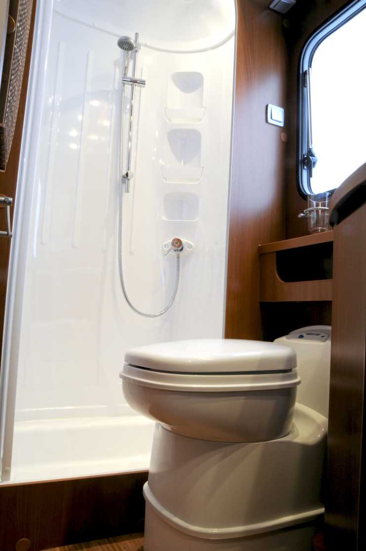Ett stort fönster med frostad yta är bra när vattenångor och eventuellt andra ångor behöver vädras ut. Duschkabinen är rymlig med avlastningshyllor och fullständigt inplastad med en lättmanövrerad dörr. Toalettbesöket är med andra ord en fröjd för att vara en husbil i denna prisklass.