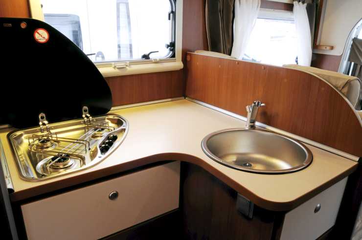 Möjligen är det på den lite enklare utformade köksdelen man sparat pengar jämfört med dyrare konkurrenter. Här finns till exempel endast ett kontaktuttag, inga skärbrädor, ingen bestickinsats i utdragslådorna, inga kryddhyllor och en stor glaslucka över den trelågiga spisen.