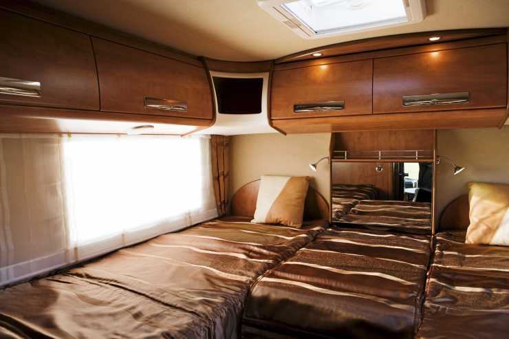 Hela bilen är försedd med mycket bra LED-belysning med dimmer. Till skillnad mot många andra fritidsfordon är belysningen lätt att förstå sig på, och det är lika lätt att hitta knapparna som hemma. Toalettrummet harseparat duschkabin som är aningen liten. Önskas större finns som sagt andra planlösningsalternativ. Annars finns det gott om hyllor för schampo och tvål men inga krokar. Däremot finns en stång att hänga handduken på. Toalettdörren är en skjutdörr vilket är smart då den inte tar någon plats i gången när den öppnas. Sängarna längst bak är av långbäddsmodell vilket gör att man inte behöver klättra över sin partner när man ska kliva upp. Det finns dock möjlighet till en godnattkram tack vare att gången mellan är madrasserad till hälften. Ett smart skåp försett med spegel kan fällas ned och bildar då ett sängbord mellan de sovande. Även här bak är belysningen föredömlig och det finns två fönster, ett vid varje säng.