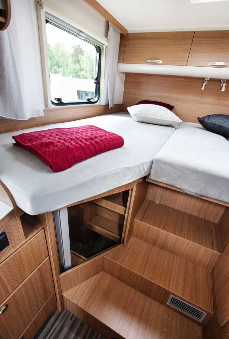Hygienutrymmet har tillåtits breda ut sig i större utsträckning och får klart godkänt. Sovdelen är även den ett lyckat utrymme som rymmer två eller flera då långbäddarna kan bäddas ihop. Under sängpartiet finns förvaring i garderober och stort förvaringsutrymme som nås utifrån. I resten av bilen finns sex överskåp som erbjuder ytterligare förvaring. Allt som allt är bilen en vettig bil för de som vill ha en praktisk bruksbil utan krusiduller. Varför Sun Living inte är lika populär som Adria är svårt att säga. Möjligen upplevs klivet upp till Adria inte så högt och konkurrensen i instegssegmentet är ganska omfattande.