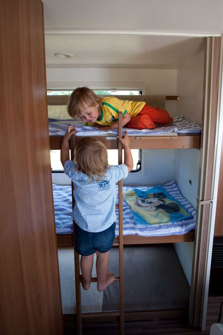 Väl inne i vagnen är våningssängen nästa punkt som utmärker sig i modellen. Här finns tre sovplatser för barn. Den nedre är placerad mer eller mindre direkt på golvet. Just denna plats är inte att rekommendera för personer som lider av klaustrofobi.