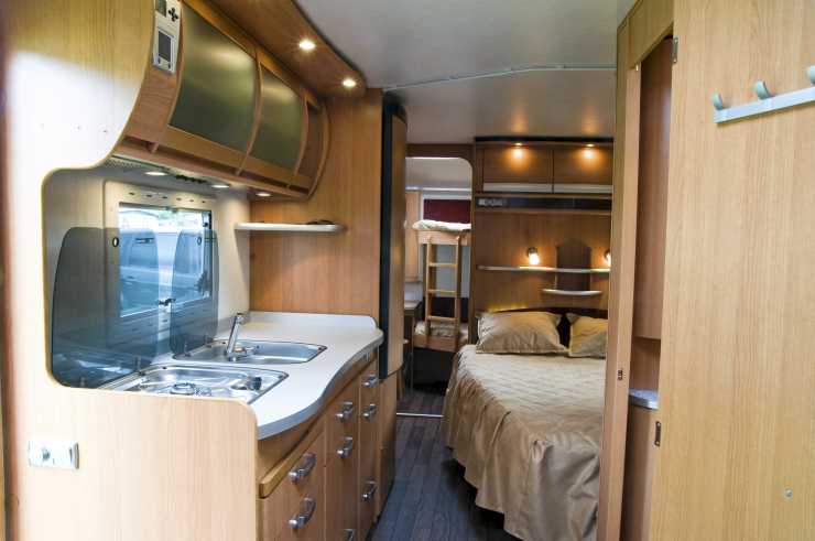 Köksbänken är rymlig (62 x 150 cm) med gott om arbetsyta kring den trelågiga spisen och det finns även en utdragbar skärbräda. Ett stort fönster och en taklucka ger luftströmmar runt kocken liksom köksfläkten. Även i köket finns det gott om ljuspunkter i form av en mängd spotlights. Aldes nya manöverpanel med pekskärm är snyggt integrerad med Cabbys egen panel. Längst upp till höger i köket finns ett vitrinskåp med snygg blå belysning. Hinkar för sopsortering följer med och köksdelen har hela nio utdragslådor och tre överskåp. Två stycken 230-voltsuttag finns också. Mittgången mellan spis och toavägg är 76 cm som smalast, vilket räcker för att passera utan att störa den som lagar mat.