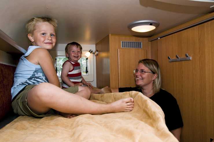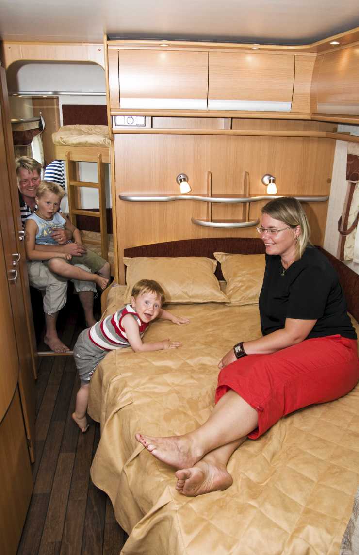Under fotograferingen bjöds en grannfamilj in i Cabbyn. Axel, 2 år, och storebror Isak, 7 år, sken som solar och trivdes väldigt bra i barnkammaren. Enda anmärkningen var avsaknaden av handtag när de skulle klättra upp i överslafen. Mamma Sofie saknade fallskydd som dock finns som tillval. Pappa Jan var särskilt imponerad av alla förvaringsskåp i den långa husvagnen, och de verkade alla enade om det förträffliga med en separat barnkammare. Cabby ser ut att ha lyckats – igen! &