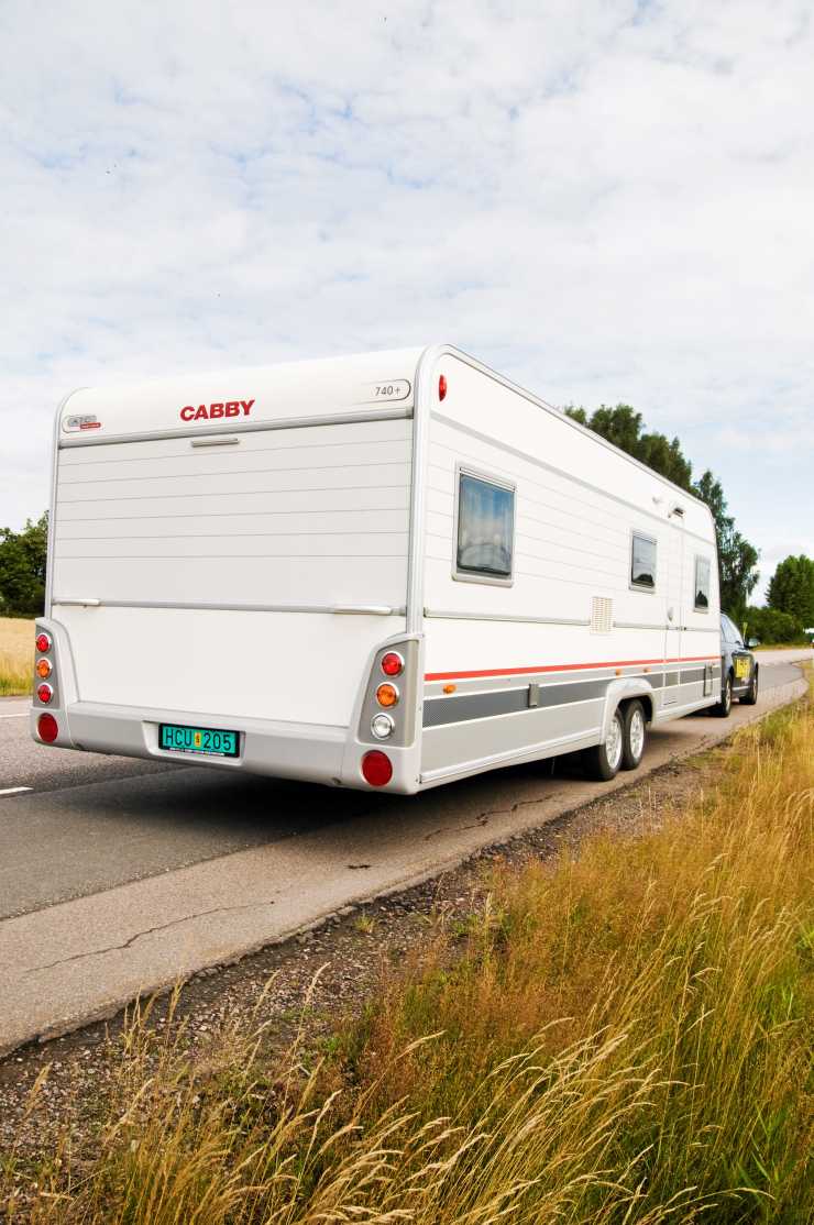 Cabby 740+ är en lång och tung vagn med tandemaxel (populärt kallat boggi). Tyngden känns främst vid acceleration men uppe i fart utgör den inga problem. Stabilisatorkoppling, chassi och ATC (antisladdsystem) från Al-Ko gör sitt ihop med vagnens dubbla hjulaxlar. Färden går från Cabbys fabrik i Kristinehamn med riktning Askeviks camping fem kilometer norr om Göta kanal och Sjötorp. Här finns sandstrand, klippbad, restaurang samt husvagnsplatser med sjöutsikt.