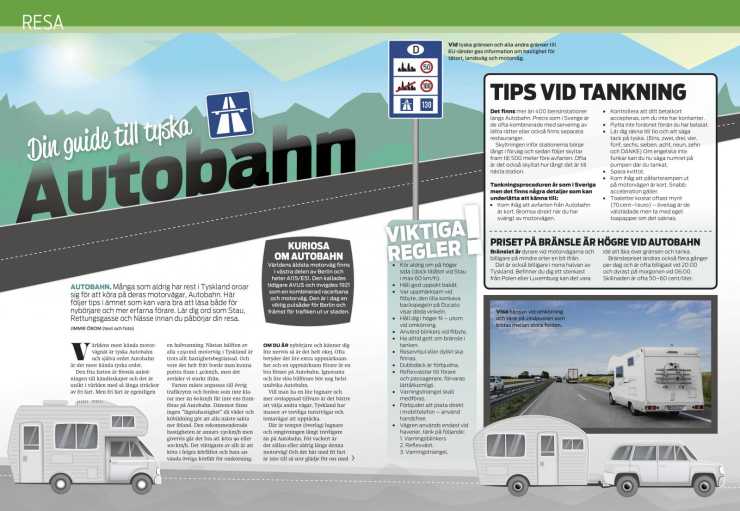 Nummer 5-2019 är fylld med en stor Autobahn-guide, färjelinjer till Europa, reportage om husbilsförsäkring och husbilsskatt. Men även inspiration från Gdansk, Sopot och Härjedalen. Dessutom Eura Mobil Profila RS och Weinsberg CaraOne 740. Trevlig läsning!