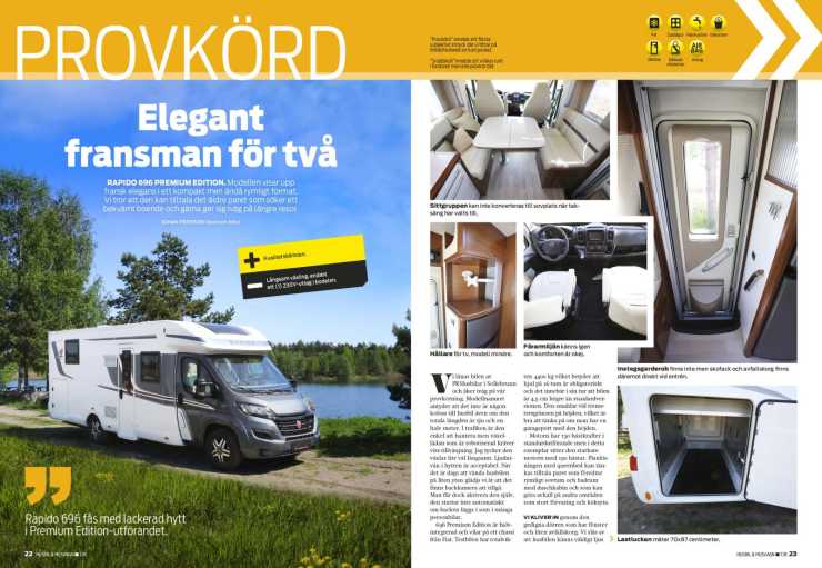 Halvintegrerade Rapido 696, plåtisen La strada Avanti C 4X4 och megavagnen Polar Glacier. Kryssbilaga med stor vinstpott medföljer! Stödben till husbilar. Hitta lugnet vid Grövelsjön och Abborrtjärn. Samt mycket mer!