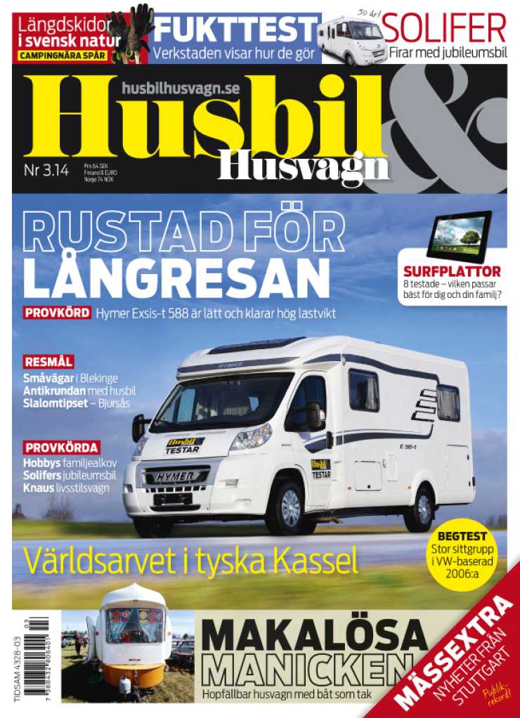Nu finns vårt senaste nummer i handeln! Som alltid laddad med flera provkörningar och massor av inspiration. Vi campar vid skidspår i Gästrikland, Dalarna och Bergslagen. Om du ogillar snö kryddar vi med somriga utflyktsmål i Blekinge. Dessutom stort test av surfplattor!