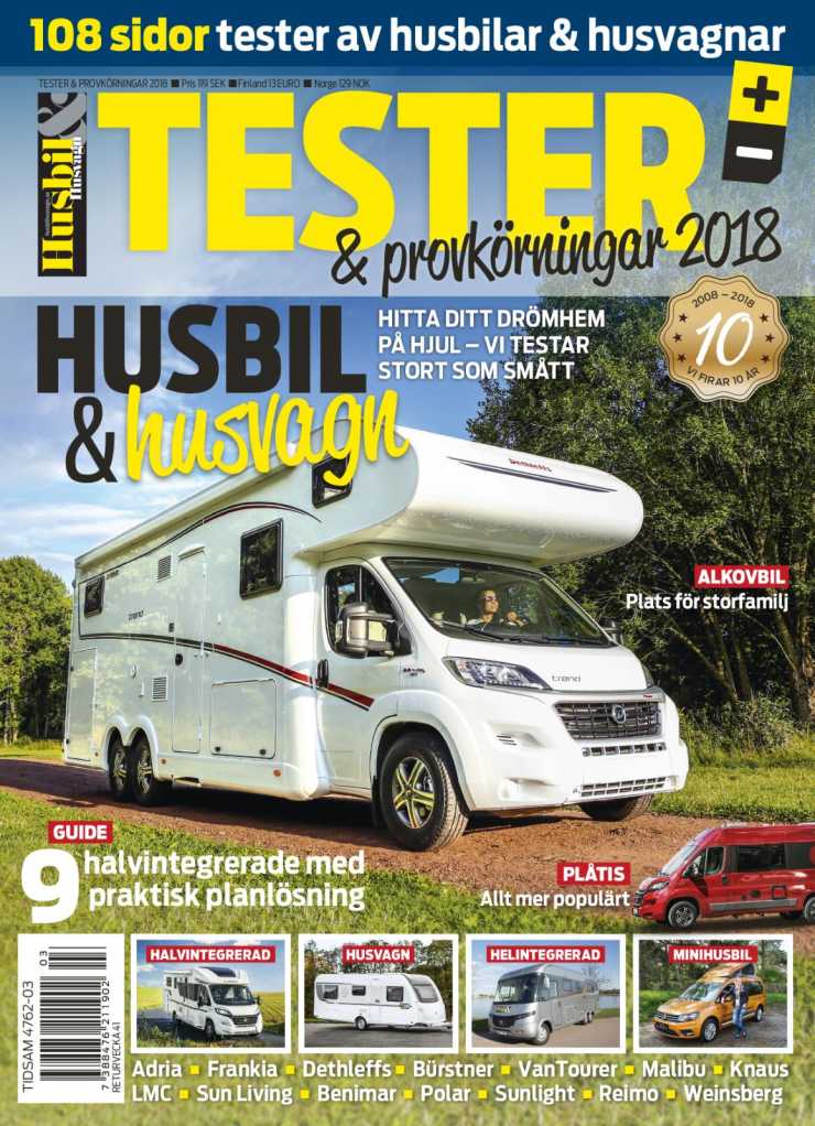 17 provkörda husbilar och husvagnar, 108 sidor fullmatad tidning med fakta och tester.